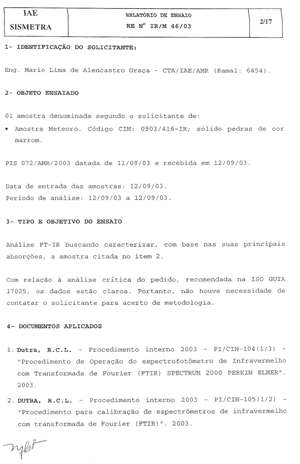 Na data de 03 de outubro de 2002 caiu na Sibéria um meteorito